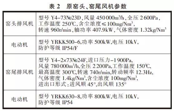 原窯頭、窯尾排風機參數見表2。