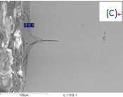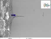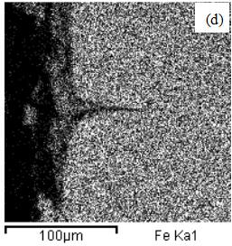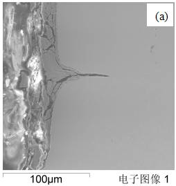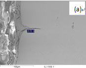 將電除塵器極線截面拋光處理后在掃描電鏡下觀察發現,極線表面存在氧化腐蝕層,厚度約為0.030mm。另外還有一條向內部擴展的裂紋,深度約為0.060mm。