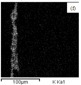 (d)鐵元素面分布;(e)氯元素面分布;(f)鉀元素面分布