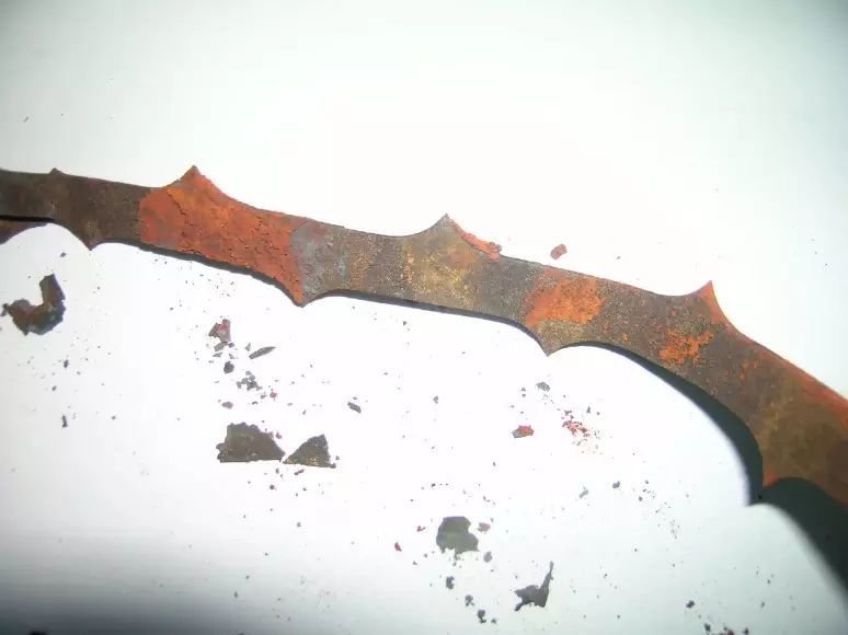 宏觀檢查發現,電除塵器極線發生嚴重的氧化腐蝕,呈深褐色和紅棕色,腐蝕產物剝落(見圖2),極線的寬度、齒高和厚度發生明顯變化。