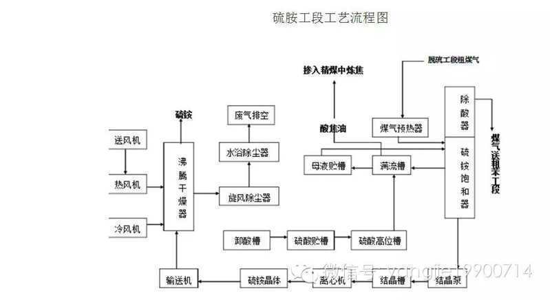 在飽和器的母液中不斷有硫銨晶體生成,用結(jié)晶泵將其連同一部分母液送至結(jié)晶槽分離,然后經(jīng)離心機(jī)分離、螺旋輸送機(jī)輸送至振動(dòng)流化床干燥器干燥后入硫銨貯斗貯存、稱重、包裝后外售。