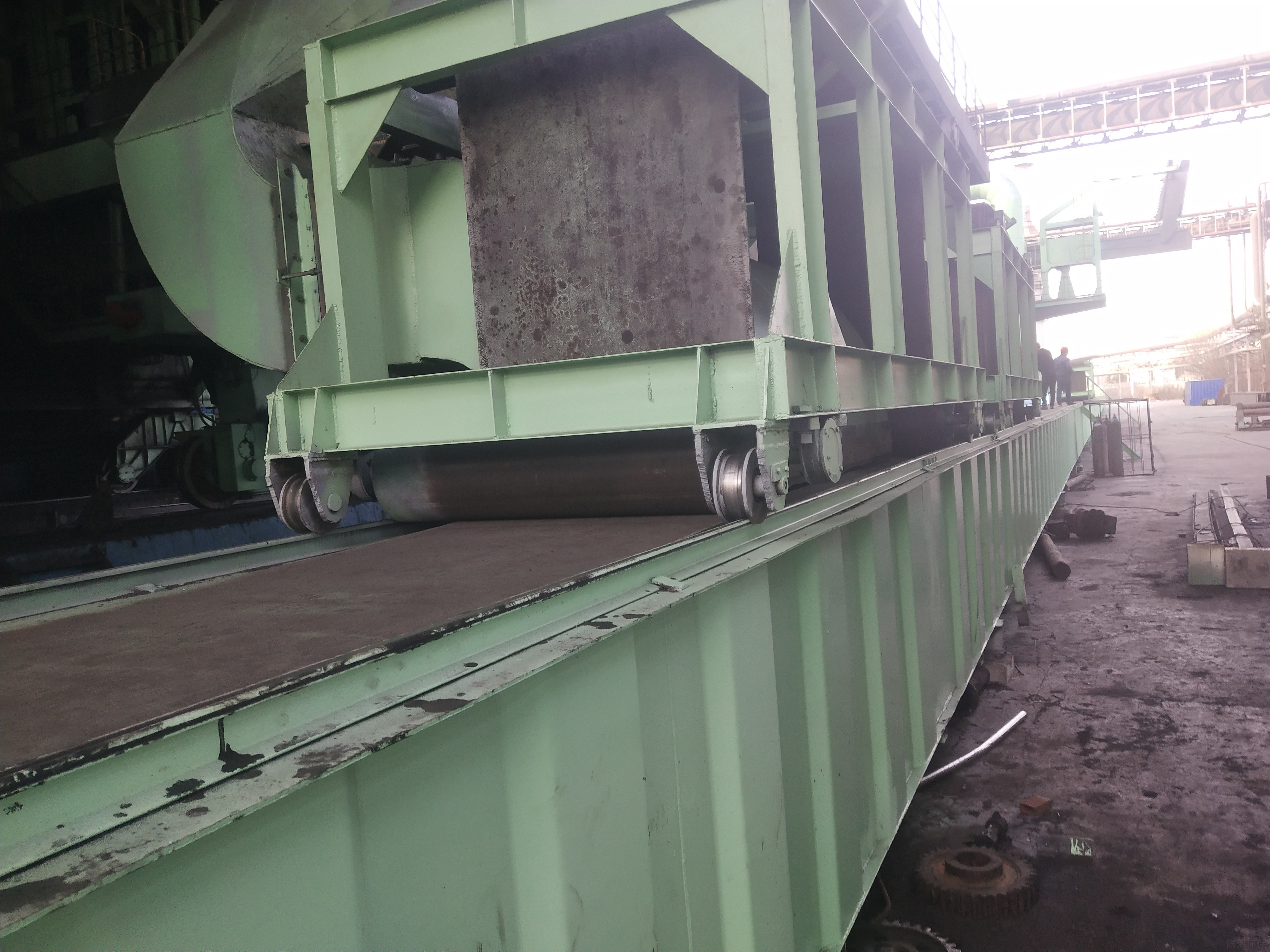 (4)在滑線內側設皮帶槽密封管道,管道上設四臺皮帶導通小車,裝煤車與推焦車各配一臺,車載吸塵罩的吸塵管道與皮帶導通小車連接,實現煙氣的導通。